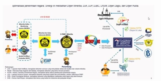 Lalu untuk aspek Pembinaan dan Pengawasan, pelaporan dilakukan melalu Minerba Online Monitoring System (MOMS) dan Modul Verifikasi Penjualan (MVP), E-PNBP dan Sistem Informasi Pencatatan Piutang (SIPP).
