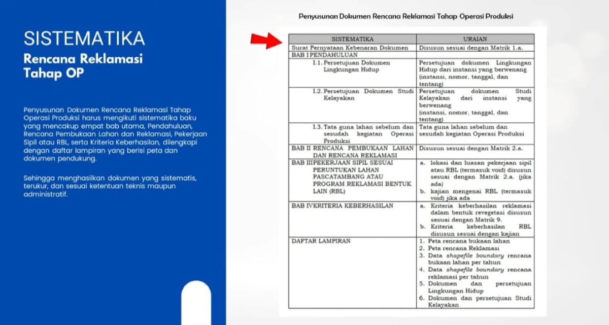 Melalui format penyampaian yang “serius tapi santai”, tutorial ini diharapkan mempermudah para pelaku usaha pertambangan memahami dan menyusun dokumen reklamasi secara tepat, lengkap, serta sesuai ketentuan peraturan perundang-undangan.
