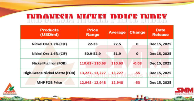 “Pelemahan tipis pada produk hilir, seperti NPI, nickel matte, dan MHP menunjukkan tekanan lanjutan dari pasar global, termasuk penyesuaian permintaan industri baja nirkarat dan baterai,” ujar Meidy di Jakarta, Senin (15/12/2025).