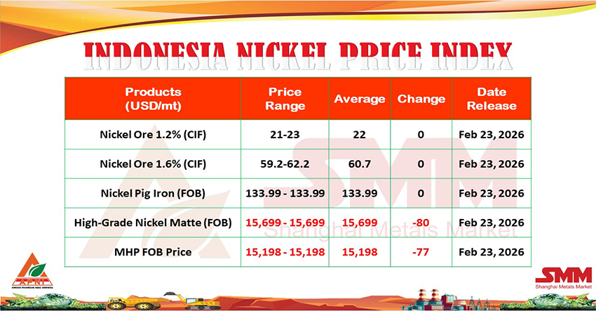 NIKEL.CO.ID, JAKARTA – Asosiasi Penambang Nikel Indonesia (APNI) resmi merilis pembaruan Indonesia Nickel Price Index (INPI) untuk periode 23 Februari 2026.