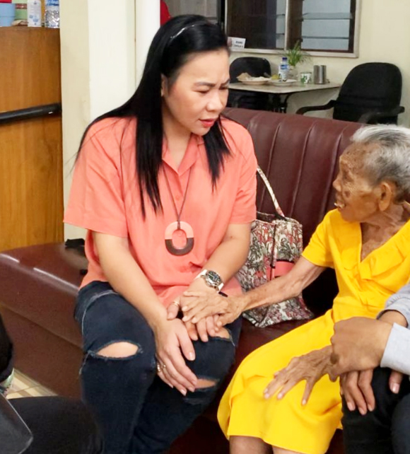 “Harus tetap banyak bicara, jangan diam. Kalau kita banyak bicara itu olahraga mulut. Kalau mulut olahraga, kita jadi senyum. Senyum itu bisa membuat otak dipenuhi rasa kasih dan bahagia. Kalau hati kita bahagia, pasti kita juga sehat,” katanya, disambut tawa ringan para penghuni panti.