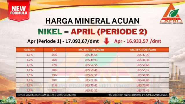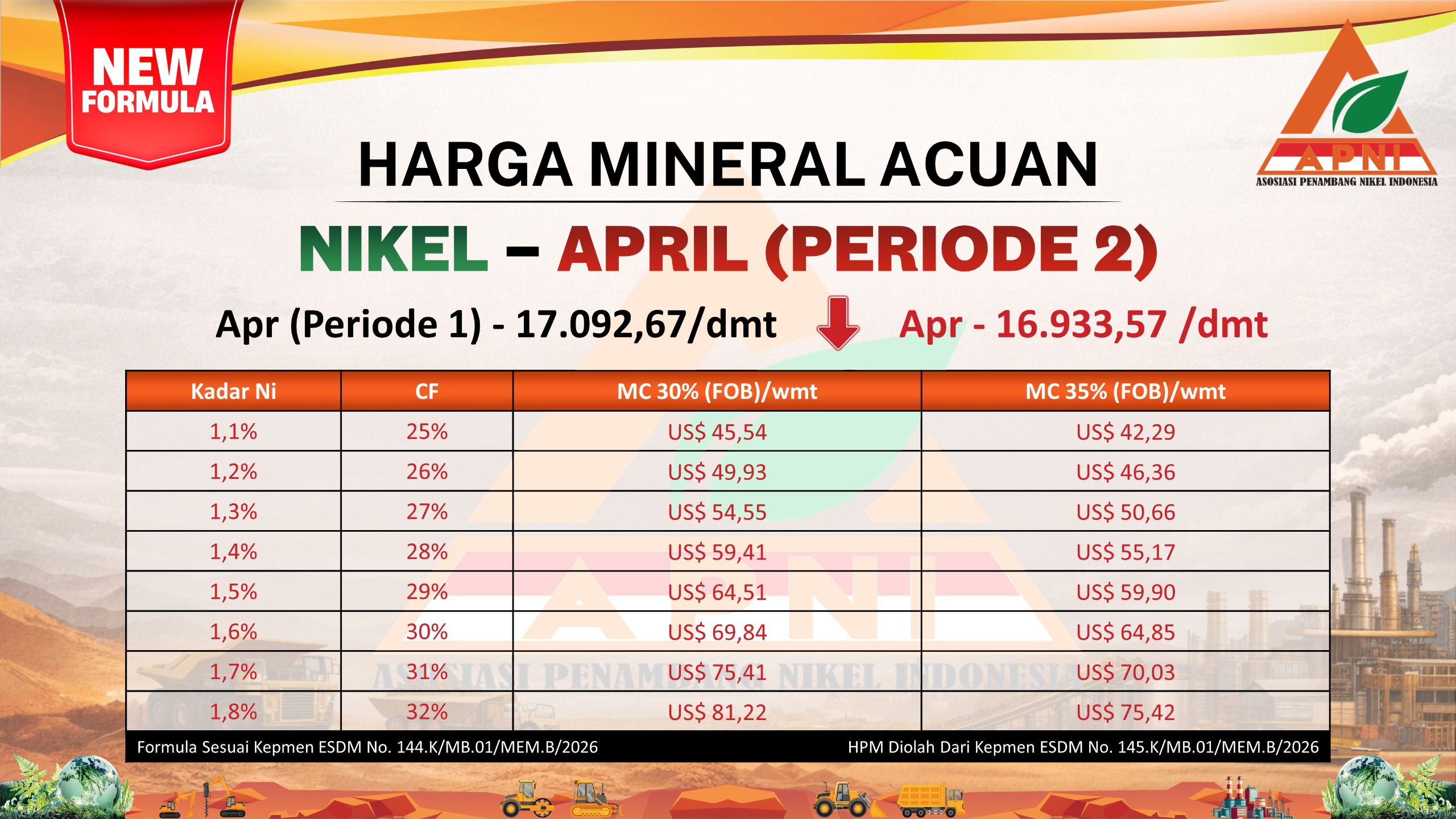 Berikut perbandingan HPM nikel untuk April 2026 periode kedua.